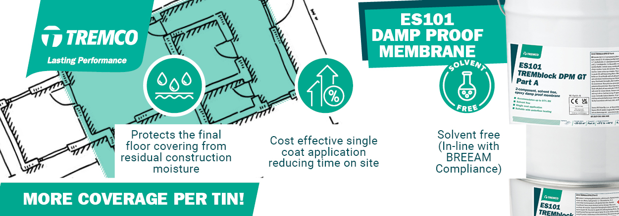 ES101 TREMBlock DPM GT has been developed to meet these demands head-on offering a forward-thinking, surface-applied damp proof membrane (DPM) that supports modern sustainability goals while maintaining the reliability professionals expect from Tremco Flooring.